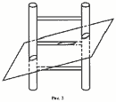 В качестве примера рассмотрим сечение плоскостью лестницы. Рис.2 Если бы наше восприятие ограничивалось плоскостью, то мы в сечении наблюдали бы 3 независимых, никак не связанных друг с другом объекта. Движение трехмерной лестницы относительно секущей плоскости приводит к перемещениям объектов и их изменениям, вплоть до исчезновения и появления.