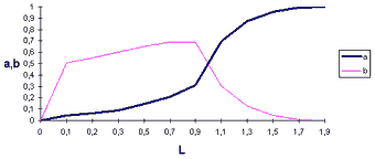 где ci - относительный объем исходной информации вида i; Ea , Eb - относительное распределение информации между взаимодействующими системами; L - множитель Лагранжа; - характеристические информационные коэффициенты.
