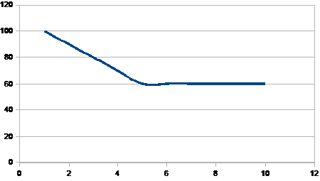 - Другой сценарий применения возможен, когда факторы настолько сильны, что обеспечить положительную динамику невозможно. Предположим, что действиями изделий ЛИК удалось только остановить отрицательную динамику. Такая динамика представлена на рисунке 3.